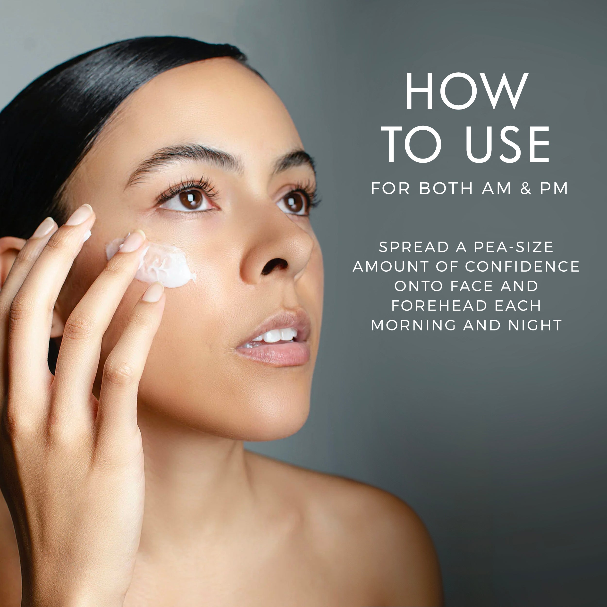 Spread a pea-size amount of Confidence onto face and forehead each morning and night