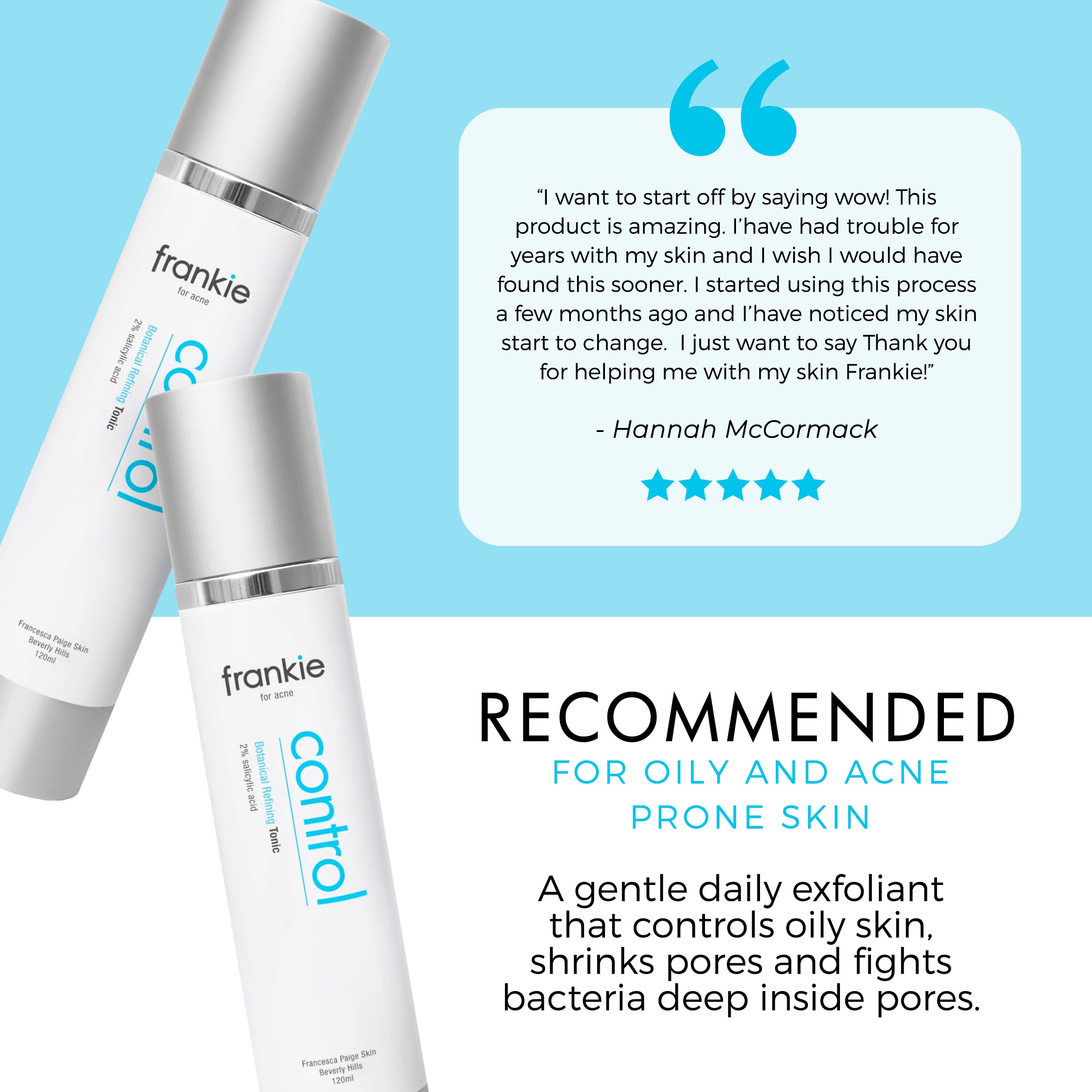 Saturate a cotton round and gently press Control into the skin. Allow to dry completely before applying a serum and/or moisturizer.